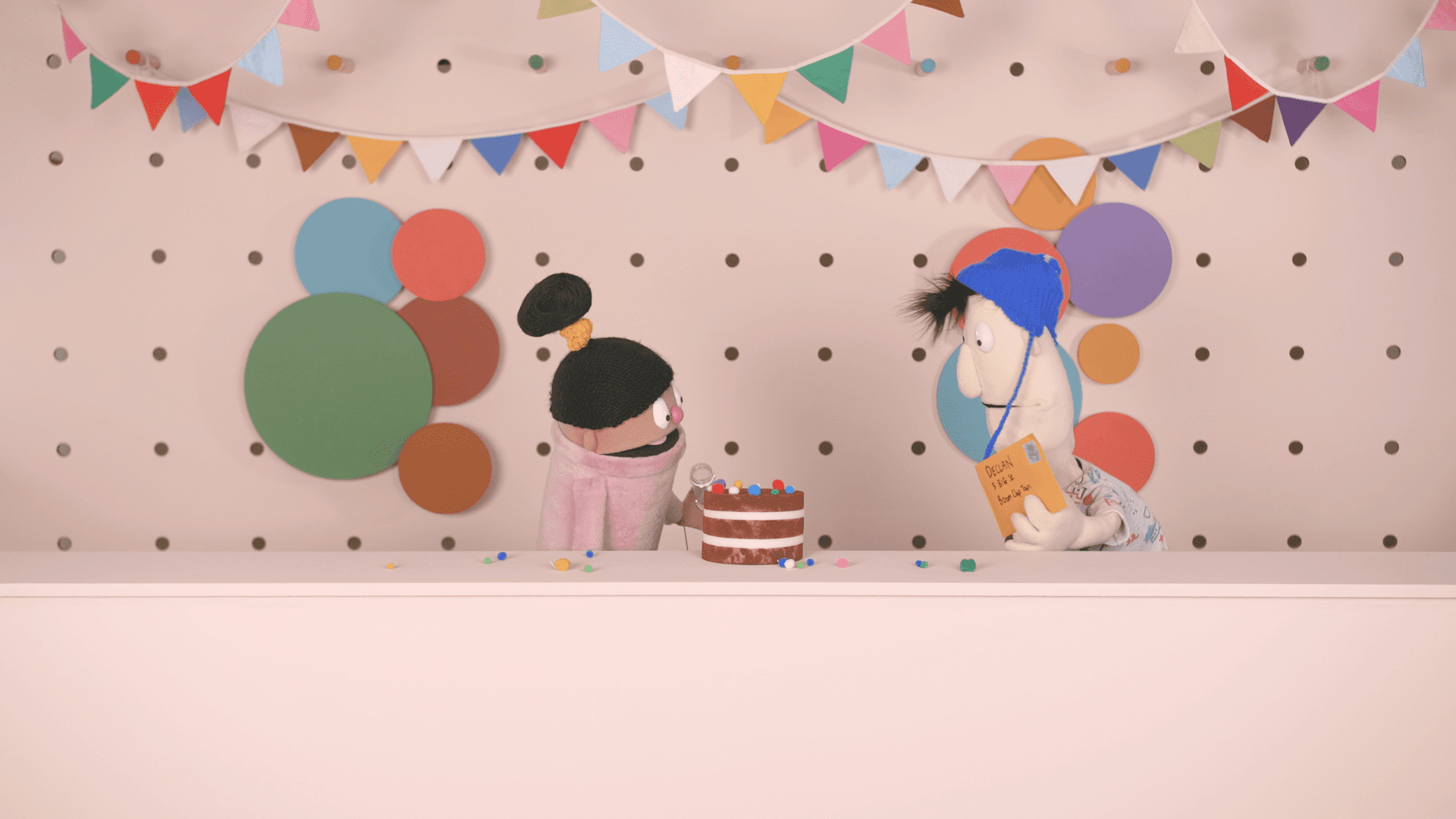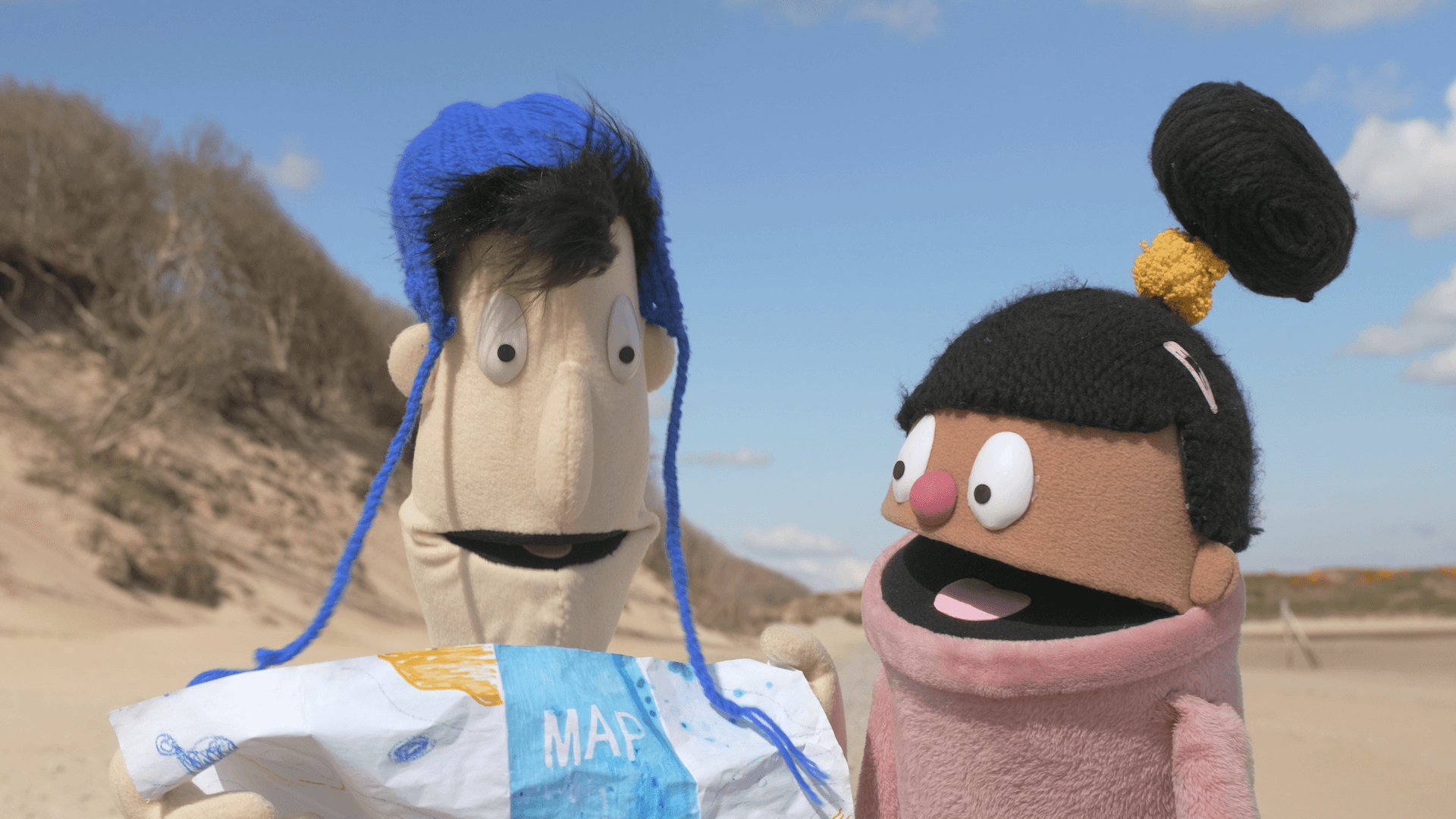 We added playful touches like animating Dec’s blinking eyes inside felt binocular lenses for humour. These details took time but brought extra personality to the puppets, enhancing the storytelling without losing the handmade charm.
